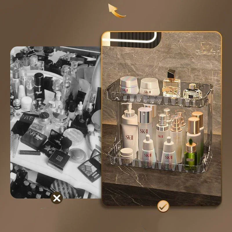 Étagère de Rangement Transparent – Double Niveau pour Salle de Bain & Coiffeuse